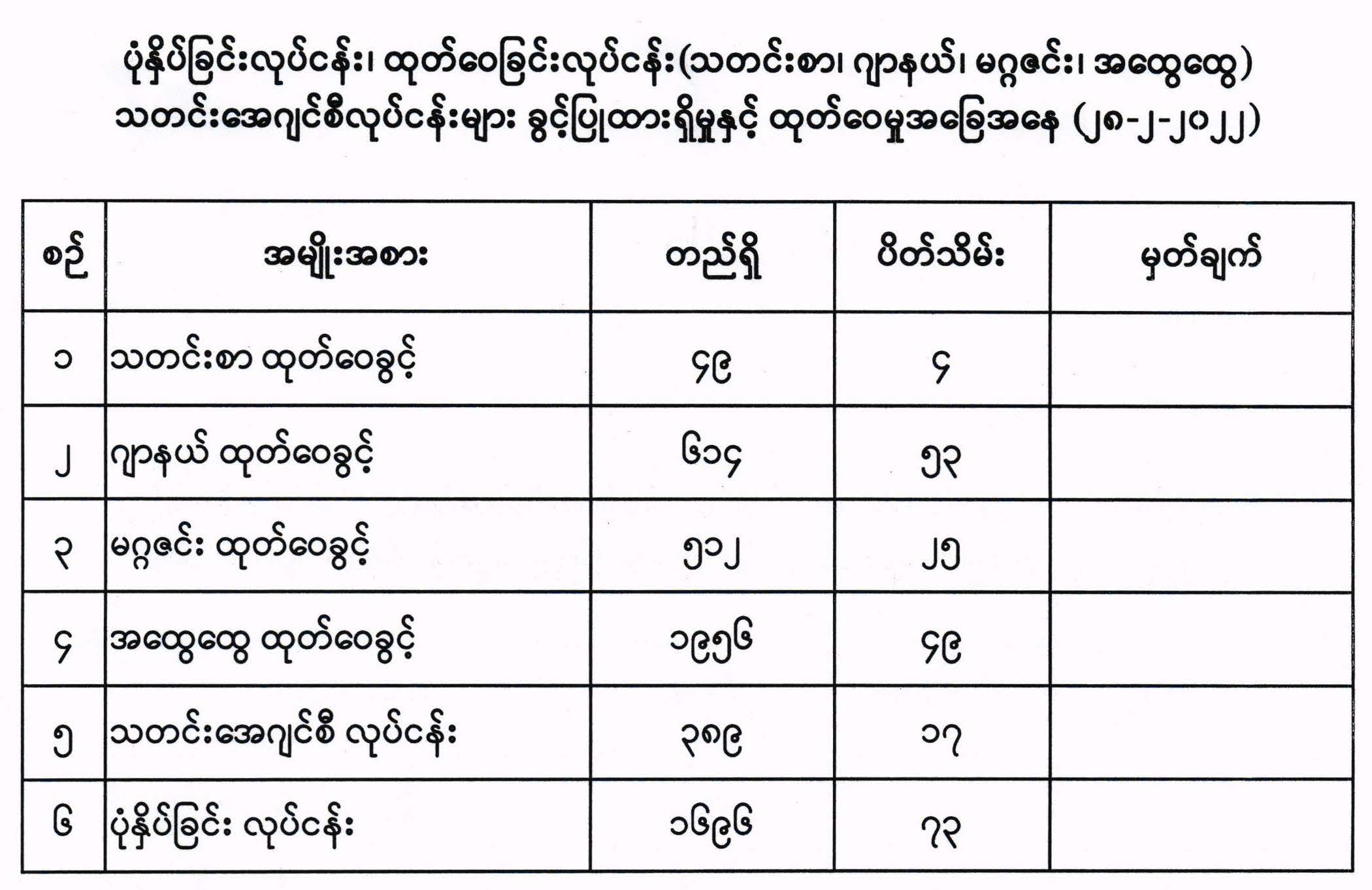ပုံနှိပ်ခြင်းလုပ်ငန်း၊ ထုတ်ဝေခြင်းလုပ်ငန်း(သတင်းစာ၊ ဂျာနယ်၊ မဂ္ဂဇင်း၊ အထွေထွေ) သတင်းအေဂျင်စီလုပ်ငန်းများ ခွင့်ပြုထားရှိမှုနှင့် ထုတ်ဝေမှုအခြေအနေ(၂၈-၃-၂၀၂၂)