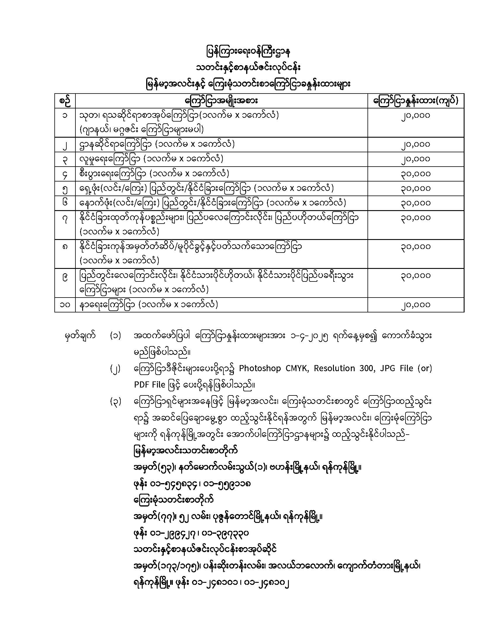 မြန်မာ့အလင်းနှင့် ကြေးမုံသတင်းစာများ၏ ကြော်ငြာခနှုန်းထားများ ပြင်ဆင်သတ်မှတ်