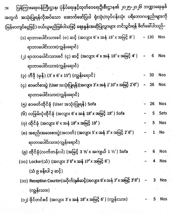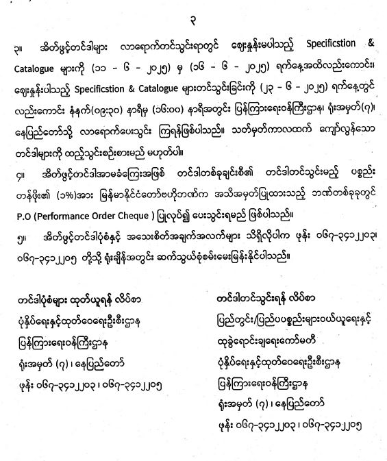ရုံးသုံး/လုပ်ငန်းသုံးစက်ကိရိယာပစ္စည်းများ ဝယ်ယူရန်အတွက် အိတ်ဖွင့်တင်ဒါခေါ်ယူခြင်း