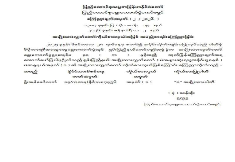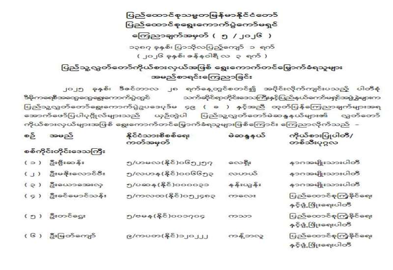 ပြည်သူ့လွှတ်တော်ကိုယ်စားလှယ်အဖြစ် ရွေးကောက်တင်မြှောက်ခံရသူများ အမည်စာရင်း ကြေညာခြင်း