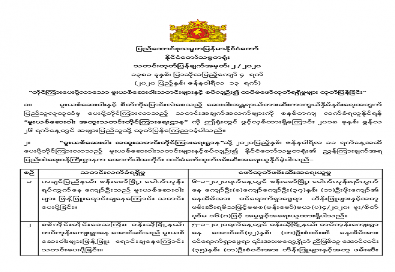 အမိန့်အမှတ်၊ ၄ / ၂၀၂၀