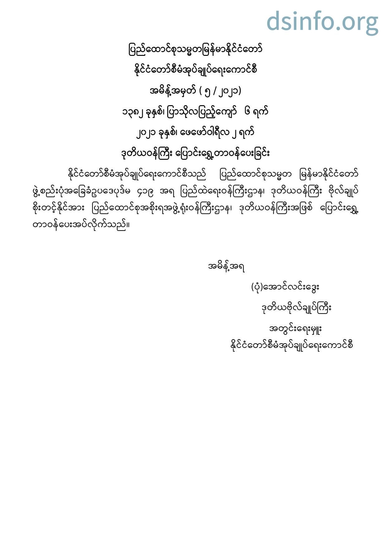 ဒုတိယဝန်ကြီး ပြောင်းရွှေ့တာဝန်ပေးခြင်း
