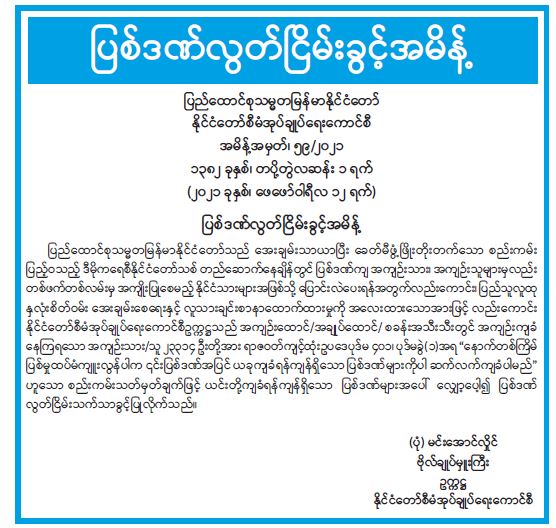 ဝန်ကြီးဌာန ကြေညာချက်များ