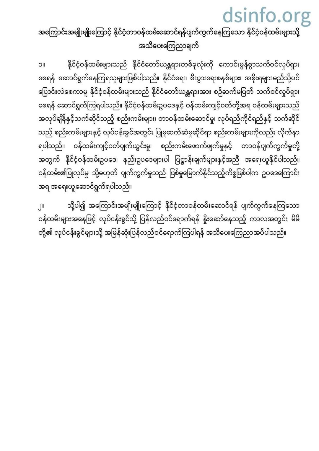 အကြောင်းအမျိုးမျိုးကြောင့် နိုင်ငံ့တာဝန်ထမ်းဆောင်ရန်ပျက်ကွက်နေကြသော နိုင်ငံ့ဝန်ထမ်းများသို့ အသိပေးကြေညာချက်