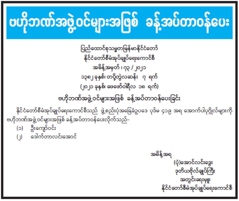 ဗဟိုဘဏ်အဖွဲ့ဝင်များအဖြစ် ခန့်အပ်တာဝန်ပေး