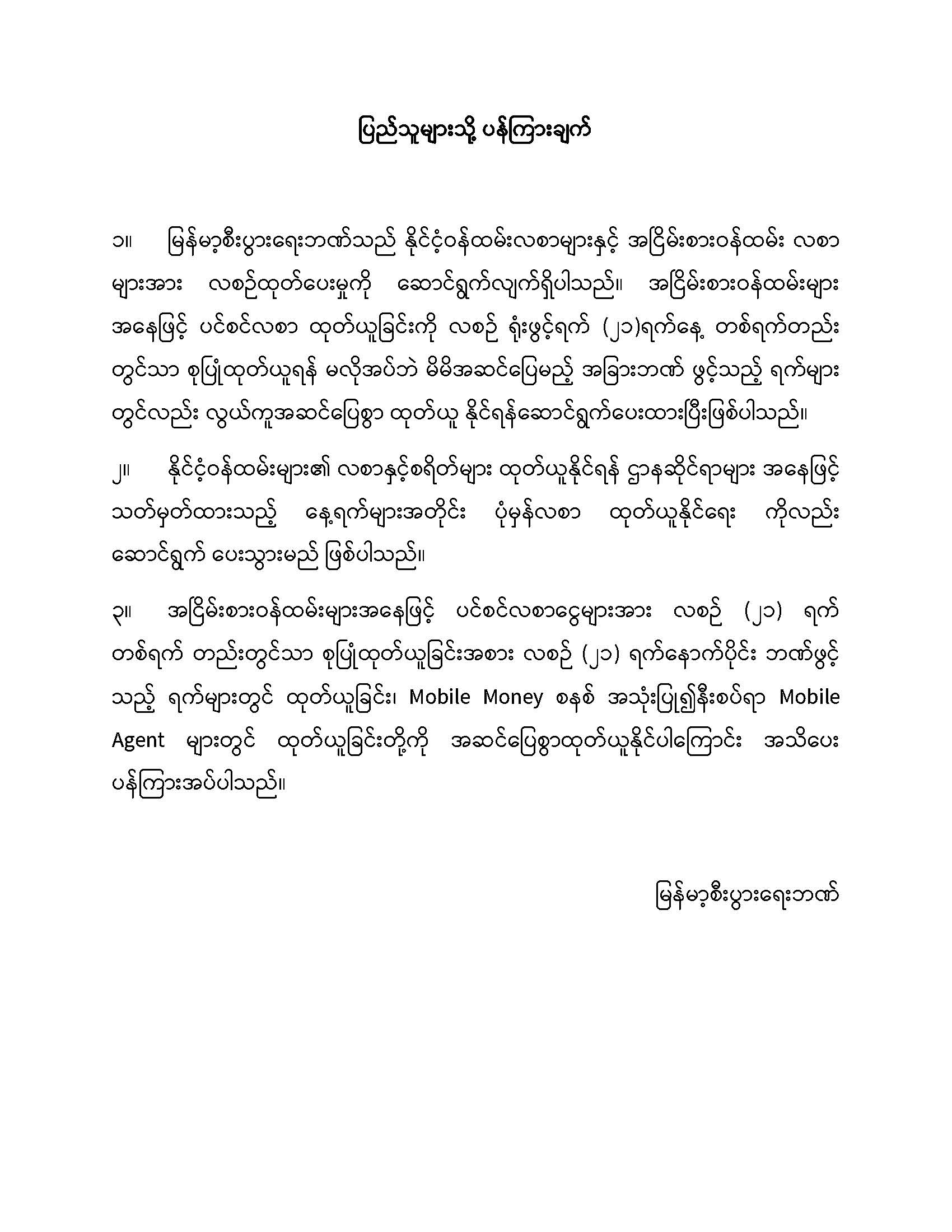 ဝန်ကြီးဌာန ကြေညာချက်များ