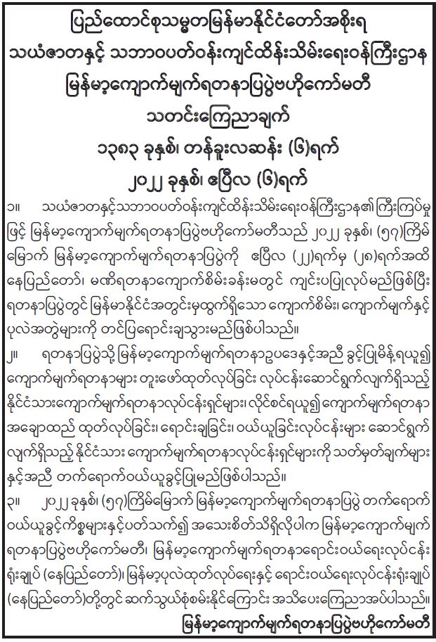 ဝန်ကြီးဌာန ကြေညာချက်များ