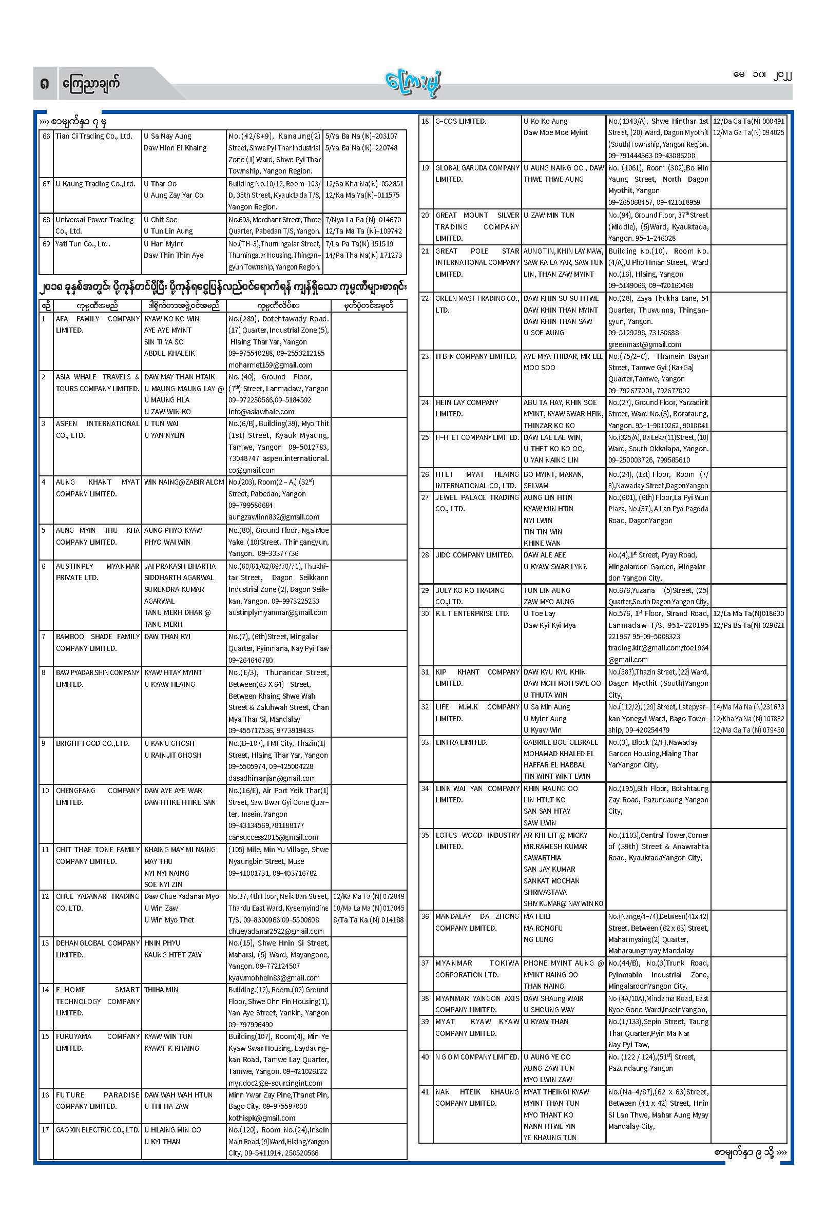 (ခ) ပြည်ထောင်စုသမ္မတမြန်မာနိုင်ငံ ကုန်သည်များနှင့်စက်မှုလက်မှုလုပ်ငန်းရှင်များ အသင်းချုပ်မှ ဆက်သွယ်ခေါ်ယူ စာရင်းရှင်းလင်းခြင်း၊