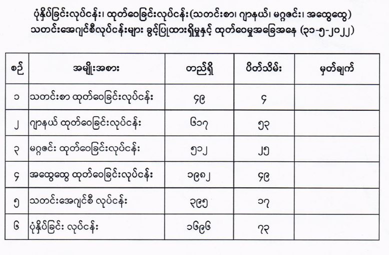 ပုံနှိပ်ခြင်းလုပ်ငန်း၊ ထုတ်ဝေခြင်းလုပ်ငန်း (သတင်းစာ၊ ဂျာနယ်၊ မဂ္ဂဇင်း၊ အထွေထွေ) သတင်းအေဂျင်စီလုပ်ငန်းများ ခွင့်ပြုထားရှိမှုနှင့် ထုတ်ဝေမှုအခြေအနေ (၃၁-၅-၂၀၂၂)