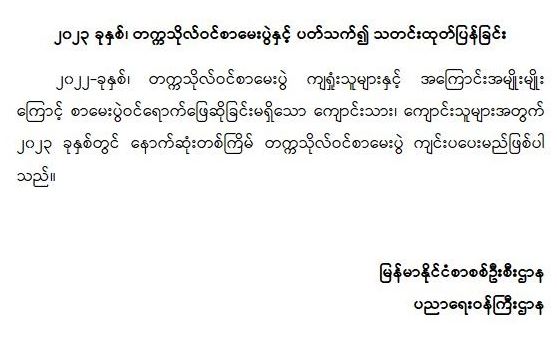 ၂၀၂၃ ခုနှစ်၊ တက္ကသိုလ်ဝင်စာမေးပွဲနှင့်ပတ်သက်၍ သတင်းထုတ်ပြန်ခြင်း