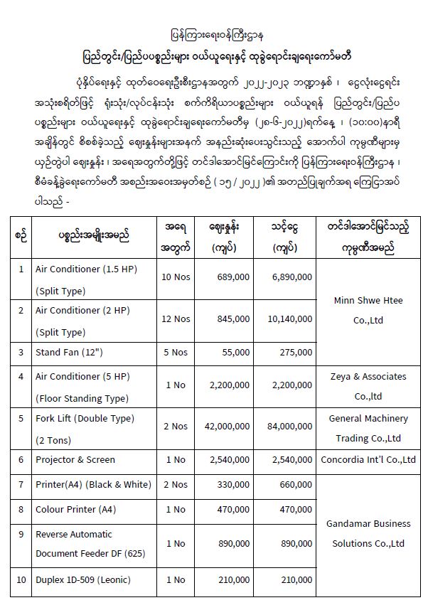ဦးစီးဌာနနှင့် လုပ်ငန်းများ၏ ကြေညာချက်များ