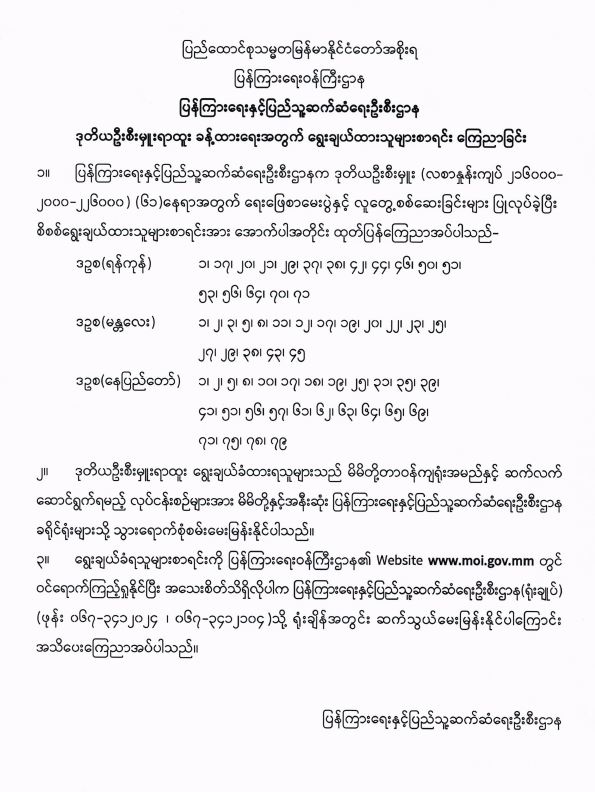 ပြန်ကြားရေးနှင့်ပြည်သူ့ဆက်ဆံရေးဦးစီးဌာန ဒုတိယဦးစီးမှူးရာထူး ခန့်ထားရေးအတွက် ရွေးချယ်ထားသူများစာရင်း ကြေညာခြင်း