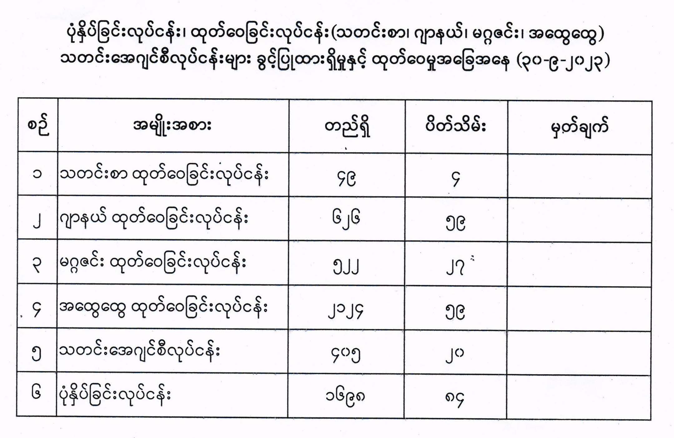 ပုံနှိပ်ခြင်းလုပ်ငန်း၊ ထုတ်ဝေခြင်းလုပ်ငန်း (သတင်းစာ၊ ဂျာနယ်၊ မဂ္ဂဇင်း၊ အထွေထွေ) သတင်းအေဂျင်စီလုပ်ငန်းများ ခွင့်ပြုထားရှိမှုနှင့် ထုတ်ဝေမှုအခြေအနေ (၃၀-၉-၂၀၂၃)