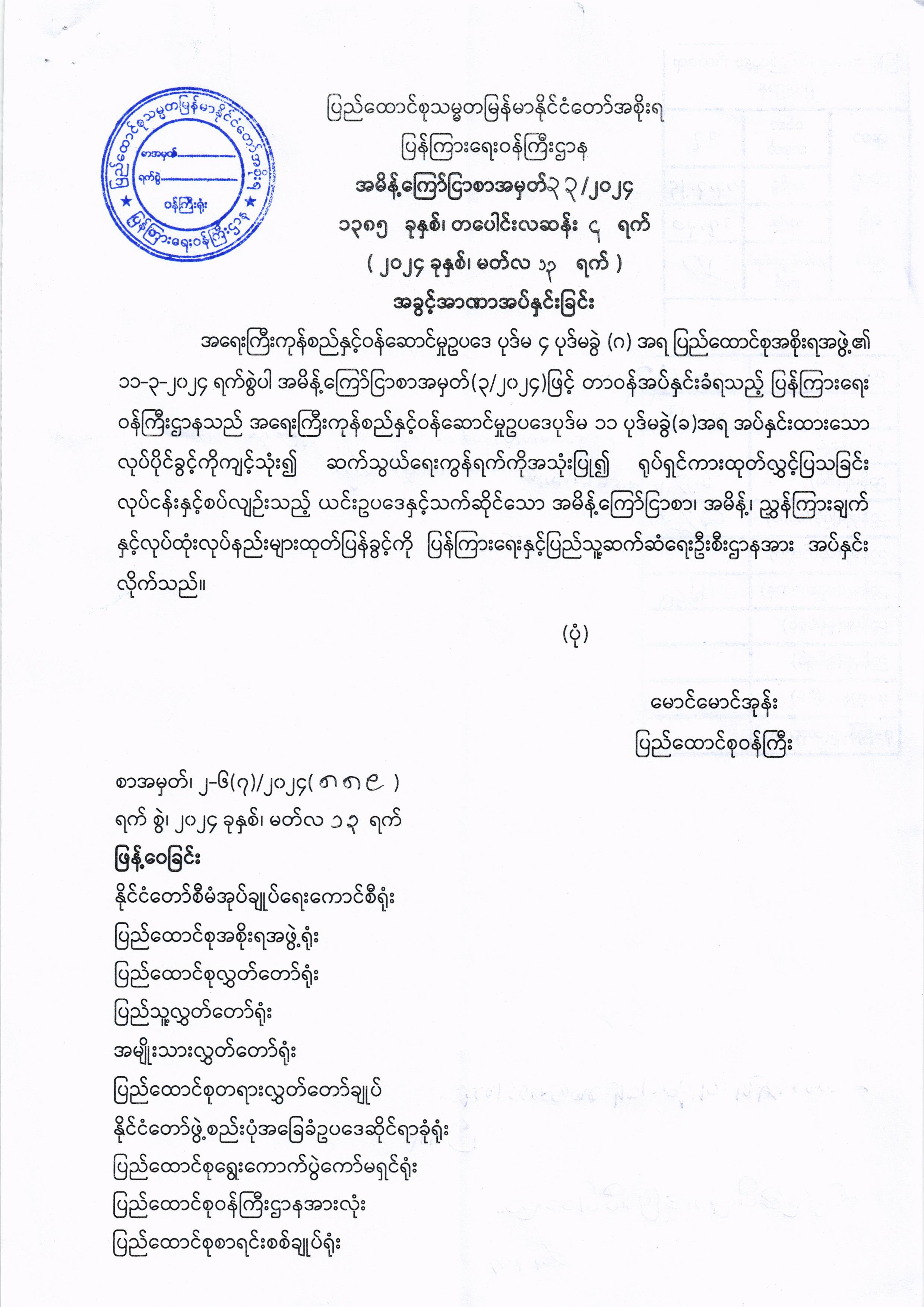 ဝန်ကြီးဌာန ကြေညာချက်များ