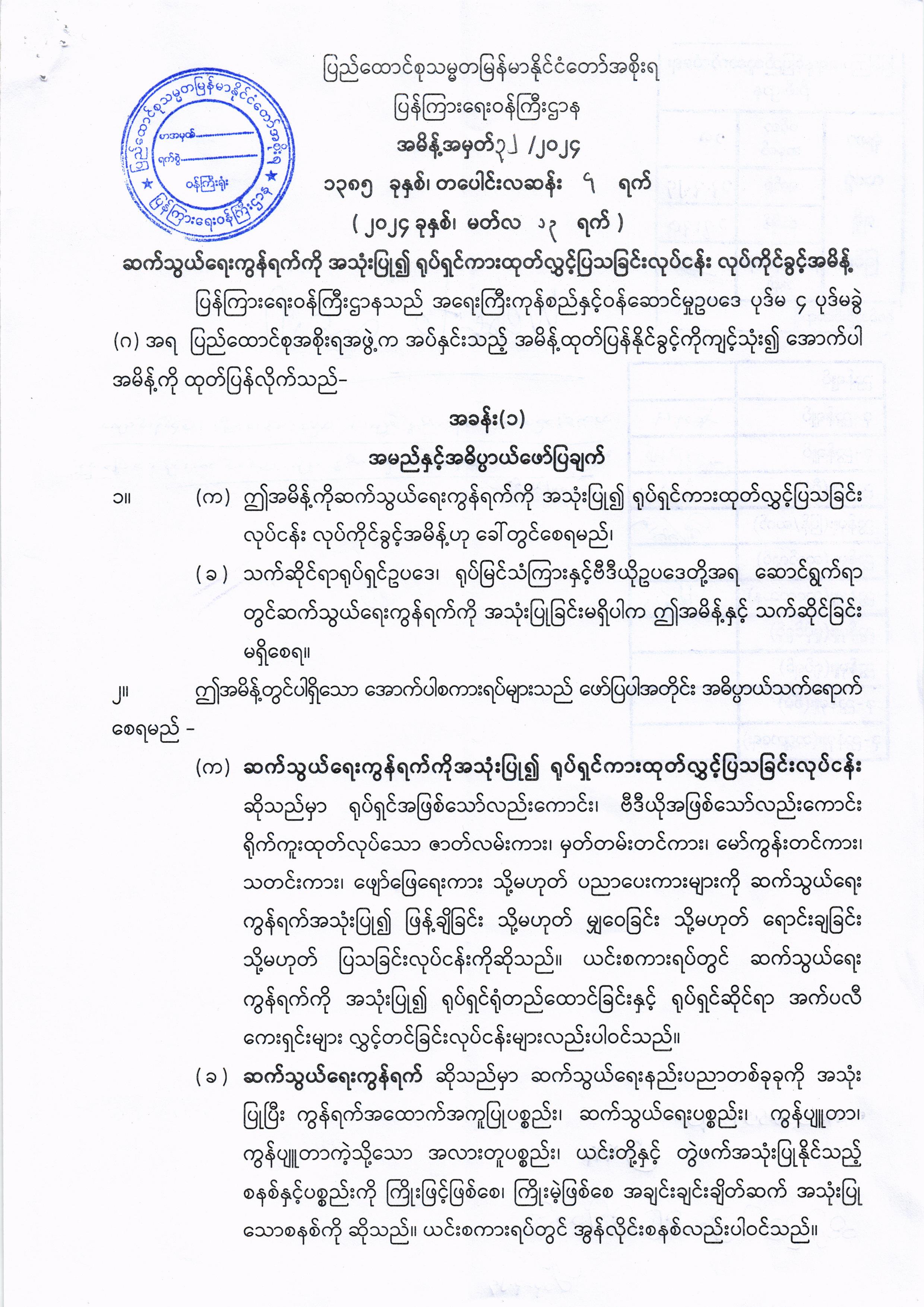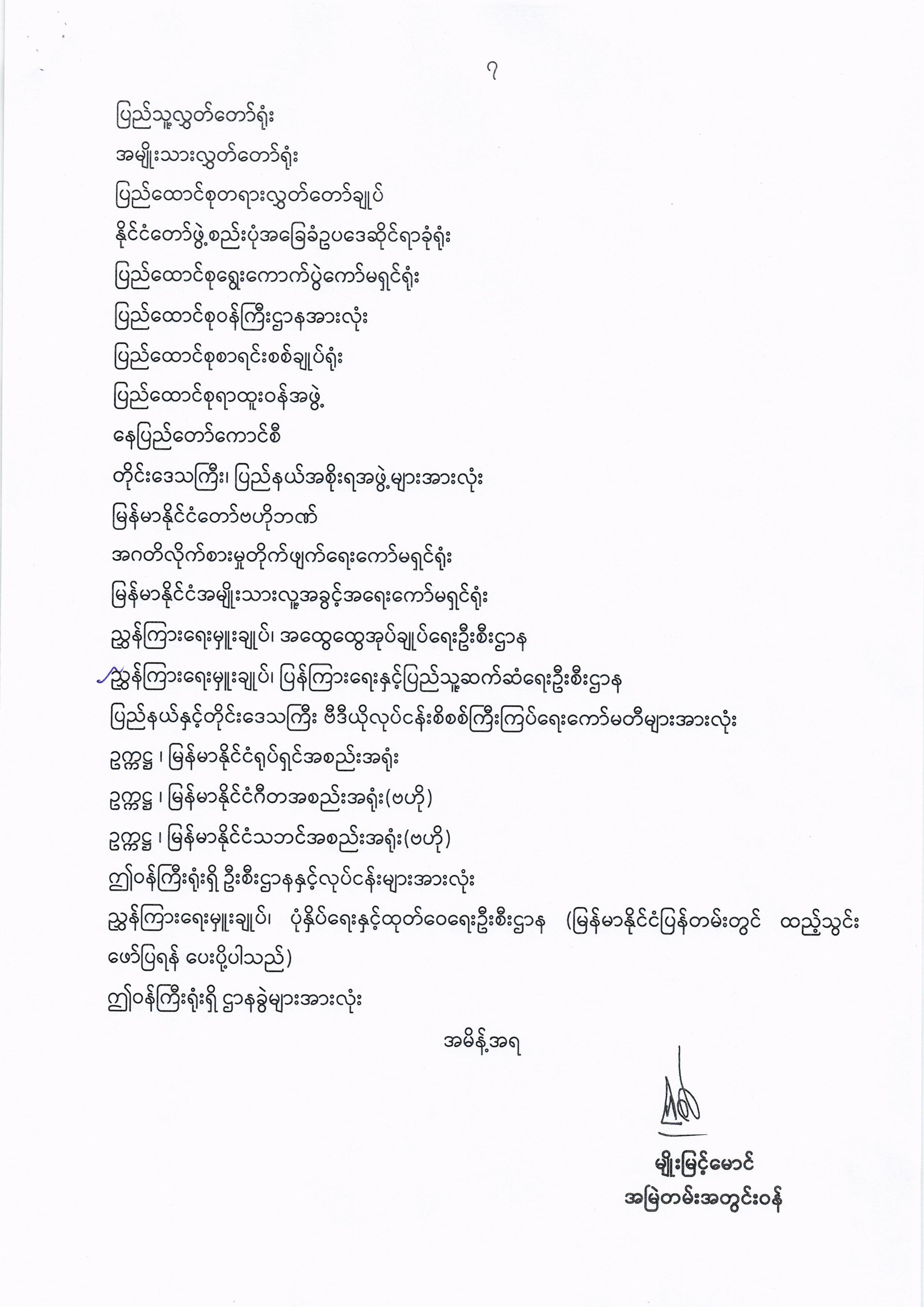 ဝန်ကြီးဌာန ကြေညာချက်များ