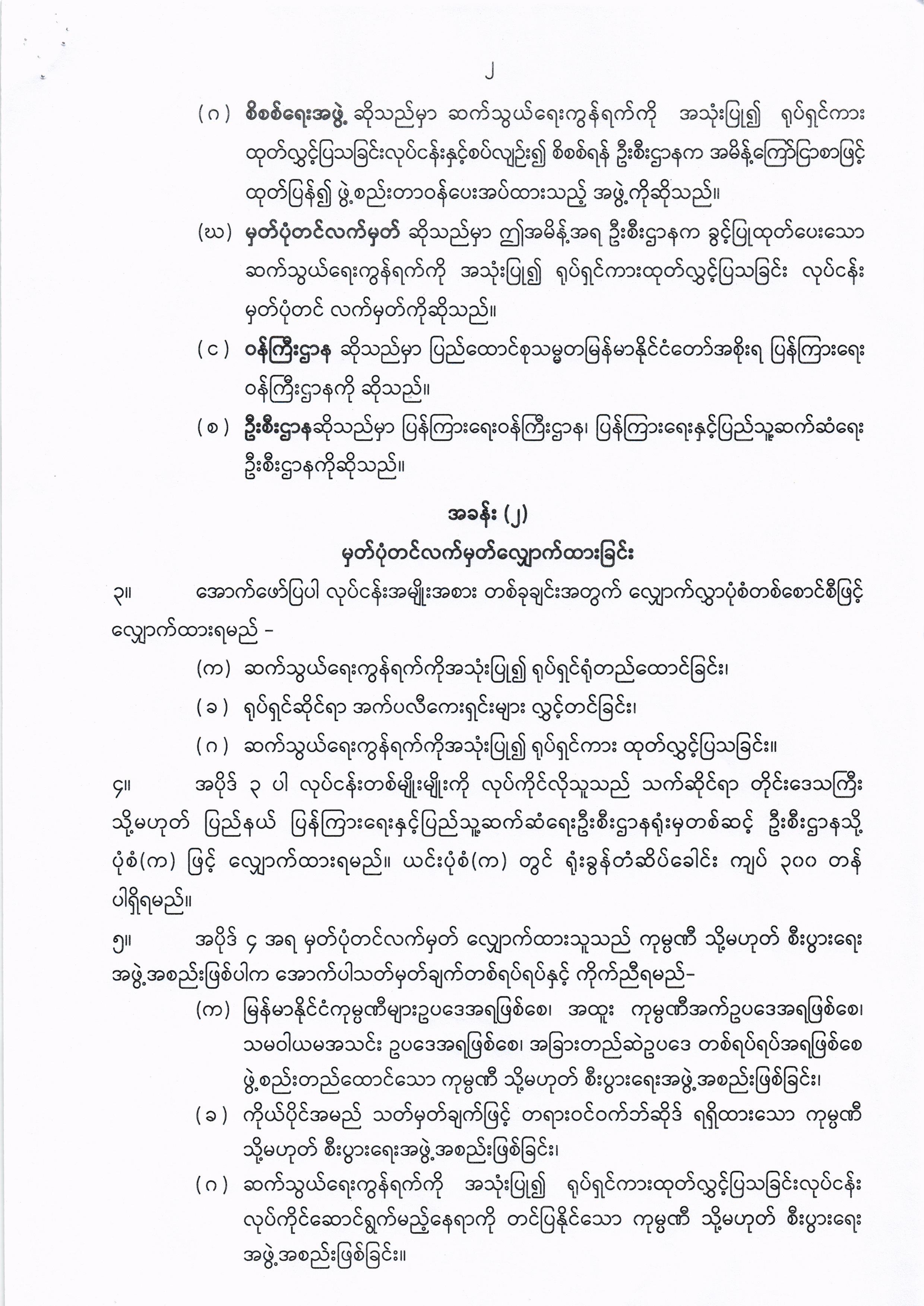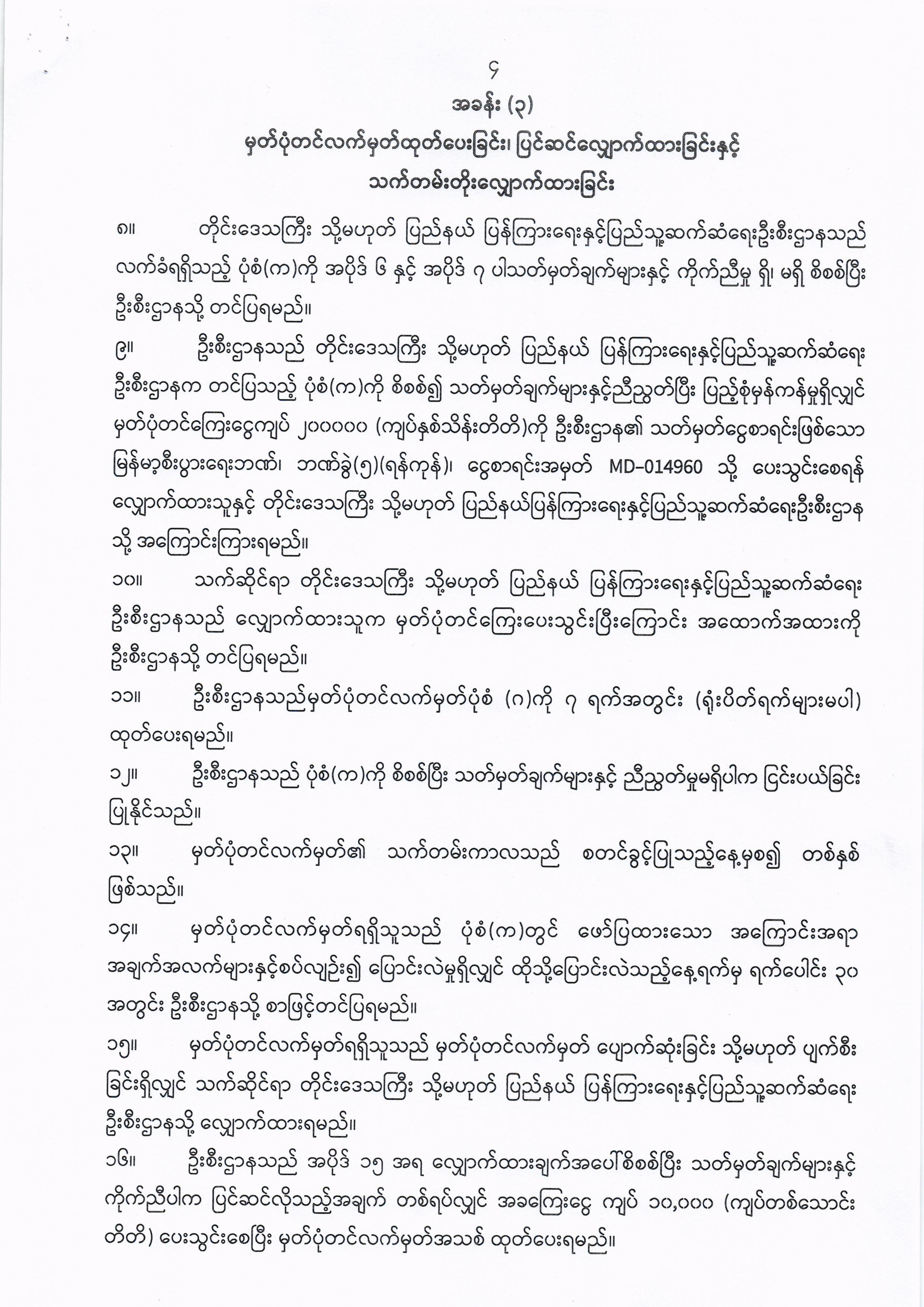 ဦးစီးဌာနနှင့် လုပ်ငန်းများ၏ ကြေညာချက်များ