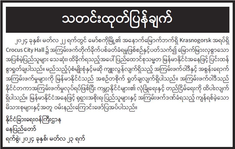 နိုင်ငံတော်အစိုးရ၏ ကြေညာချက်များ