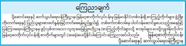 ဦးစီးဌာနနှင့် လုပ်ငန်းများ၏ ကြေညာချက်များ