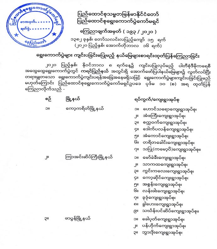 ကြေညာချက်အမှတ် ( ၁၉၃ / ၂၀၂၀)