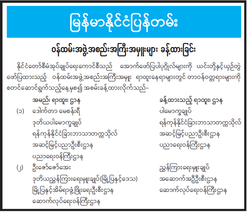ဝန်ကြီးဌာနအကြောင်း