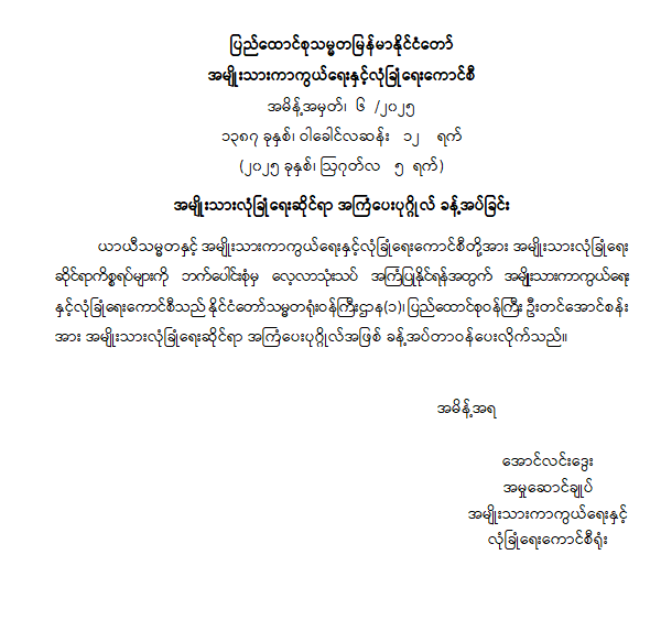 ဝန်ကြီးဌာန ကြေညာချက်များ