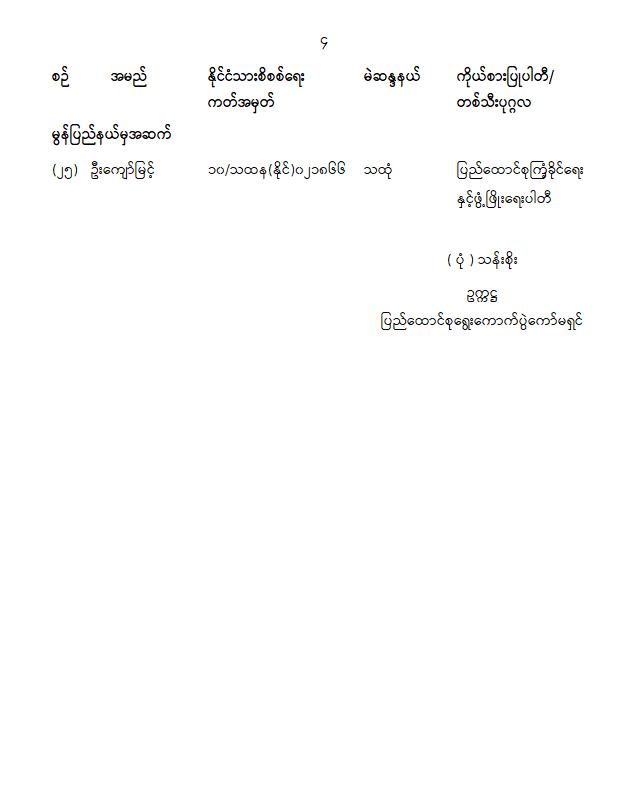 ဦးစီးဌာနနှင့် လုပ်ငန်းများ၏ ကြေညာချက်များ