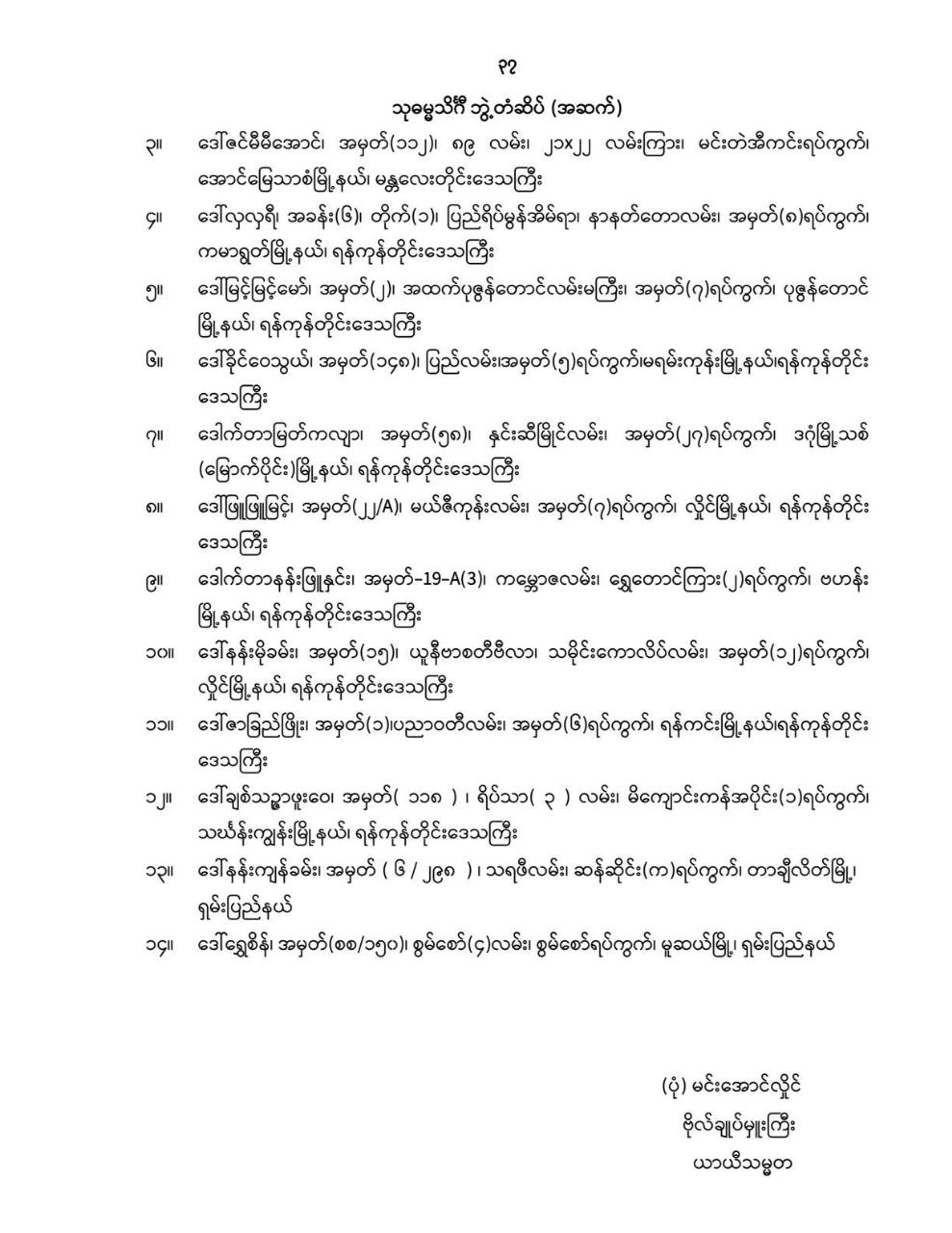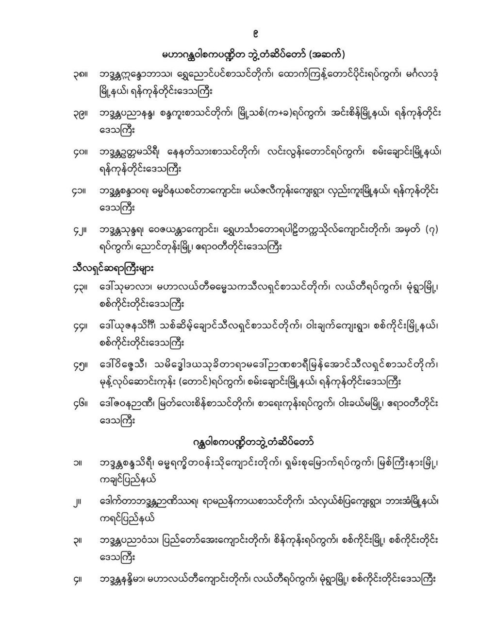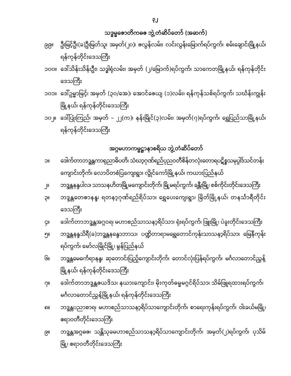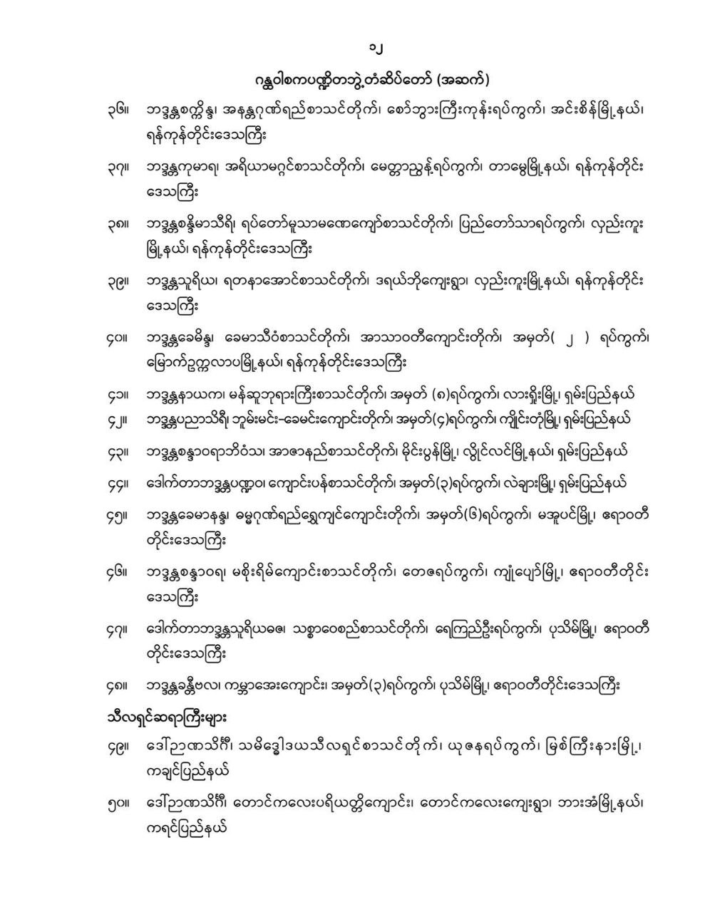 ဝန်ကြီးဌာန ကြေညာချက်များ