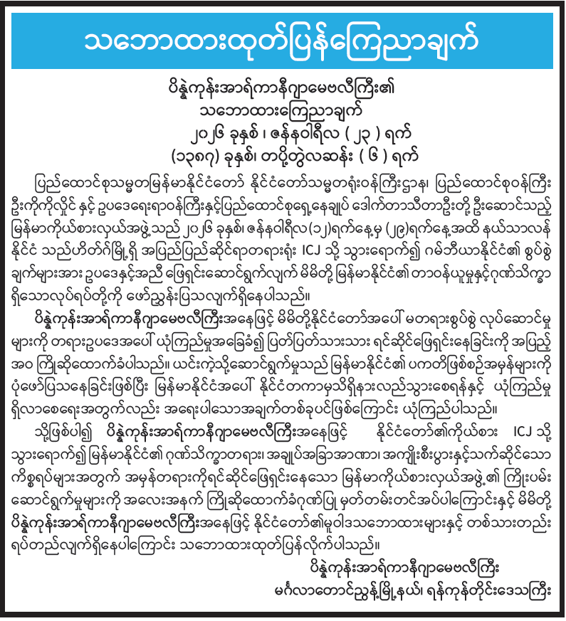 နိုင်ငံတော်အစိုးရ၏ ကြေညာချက်များ
