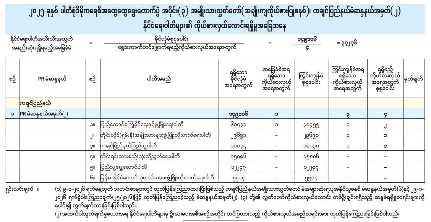 ၂၀၂၅ ခုနှစ် ပါတီစုံဒီမိုကရေစီအထွေထွေရွေးကောက်ပွဲ အပိုင်း (၃) အမျိုးသားလွှတ်တော် (အချိုးကျကိုယ်စားပြုစနစ်)၊ ချင်ပြည်နယ်မဲဆန္ဒနယ်အမှတ် (၂) နိုင်ငံရေးပါတီများ၏ ကိုယ်စားလှယ်လောင်းရရှိမှုအခြေအနေ 01/30/2026