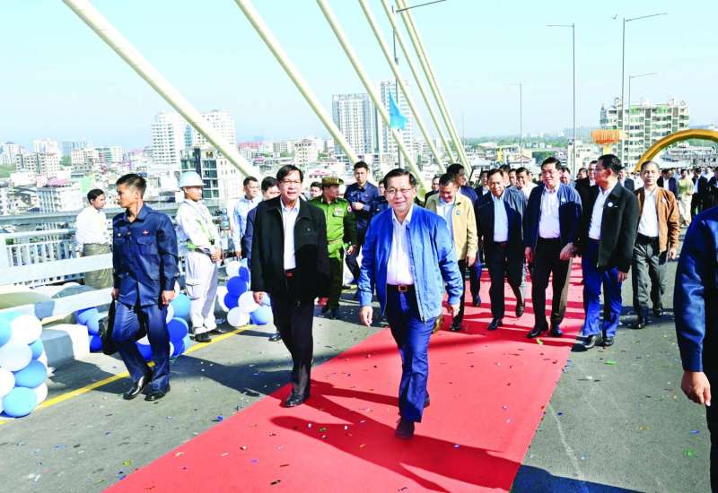 ရန်ကုန်တိုင်းဒေသကြီးအတွင်းရှိ မြန်မာ-ကိုရီးယားချစ်ကြည်ရေး (ဒလ) တံတားဖွင့်ပွဲအခမ်းအနားကို ယနေ့နံနက်ပိုင်းတွင် ကျင်းပပြုလုပ်ရာ ပြည်ထောင်စုသမ္မတမြန်မာနိုင်ငံတော် ယာယီသမ္မတ နိုင်ငံတော်လုံခြုံရေးနှင့်အေးချမ်းသာယာရေးကော်မရှင်ဥက္ကဋ္ဌ ဗိုလ်ချုပ်မှူးကြီး မင်းအောင်လှိုင် တက်ရောက်ချီးမြှင့်သည်။