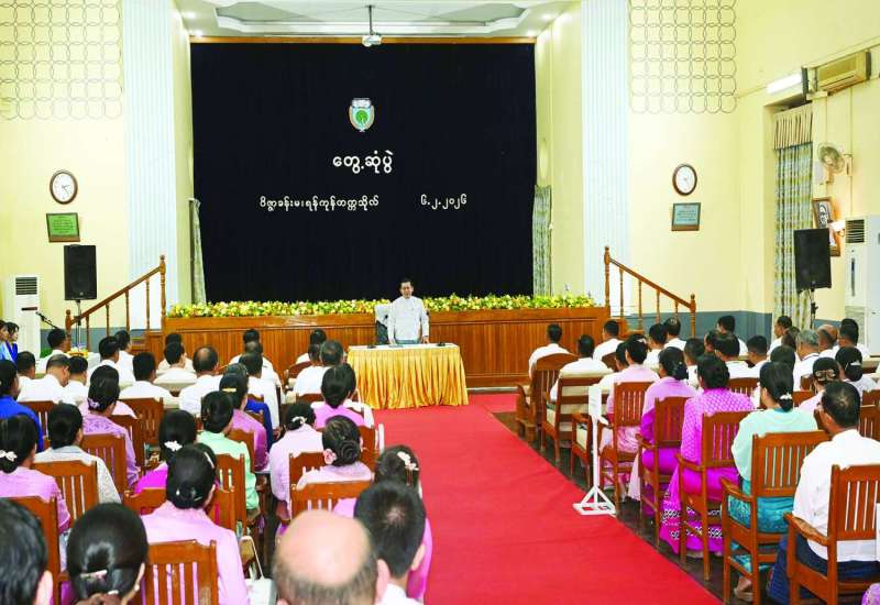 ပြည်ထောင်စုသမ္မတမြန်မာနိုင်ငံတော် ယာယီသမ္မတ နိုင်ငံတော်လုံခြုံရေးနှင့်အေးချမ်းသာယာရေးကော်မရှင်ဥက္ကဋ္ဌ ဗိုလ်ချုပ်မှူးကြီး မင်းအောင်လှိုင်သည် ဝန်ကြီးဌာနအသီးသီးရှိ တက္ကသိုလ်၊ ဒီဂရီကောလိပ်များမှ ပါမောက္ခချုပ်များ၊ ကျောင်းအုပ်ကြီးများ၊ ပါမောက္ခများနှင့် ဆရာ၊ ဆရာမများအား ယနေ့မွန်းလွဲပိုင်းတွင် ရန်ကုန်တက္ကသိုလ်၊ ဝိဇ္ဇာခန်းမ၌ တွေ့ဆုံအမှာစကားပြောကြားသည်။