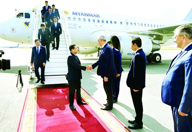 EAEU ၏ အလှည့်ကျဥက္ကဋ္ဌဖြစ်သည့် ဘယ်လာရုစ်သမ္မတ နိုင်ငံသမ္မတ H.E. Mr. Alexander Grigoryevich Lukashenko ၏ ဖိတ်ကြားချက်အရ မင့်စ်မြို့၌ ကျင်းပပြုလုပ်မည့် စတုတ္ထအကြိမ် ဥရောပ-အာရှ စီးပွားရေးဖိုရမ် (EEF 2025)သို့ တက်ရောက်ရန်အတွက် နိုင်ငံတော်စီမံအုပ်ချုပ်ရေးကောင်စီဥက္ကဋ္ဌ နိုင်ငံတော်ဝန်ကြီးချုပ် ဗိုလ်ချုပ်မှူးကြီးမင်းအောင်လှိုင် ဦးဆောင်သည့် မြန်မာအဆင့်မြင့် ကိုယ်စားလှယ်အဖွဲ့သည် ယနေ့နံနက်ပိုင်းတွင် မြန်မာနိုင်ငံမှ အထူးလေယာဉ်ဖြင့် ထွက်ခွာခဲ့ပြီး ညနေပိုင်းတွင် နိုဗာစီဗစ်မြို့ သာမာရှယ်ဗာလေဆိပ်သို့ရောက်ရှိရာ နိုဗာစီဗစ်ဒေသအုပ်ချုပ်ရေးမှူး Mr. Travnikov Ahdrey Aleksandrovich နှင့် တာဝန်ရှိသူများက လေဆိပ်၌ လှိုက်လှဲနွေးထွေးစွာ ကြိုဆိုနှုတ်ဆက်သည်။