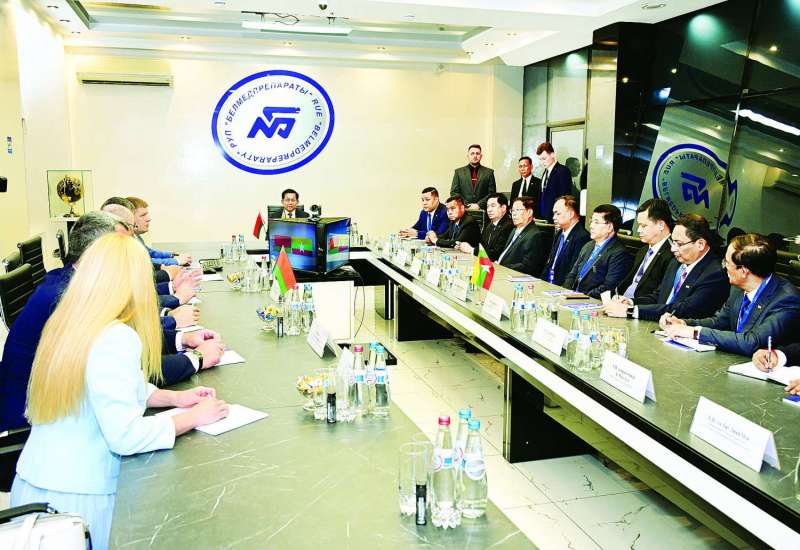 ဘယ်လာရုစ်သမ္မတနိုင်ငံသို့ ရောက်ရှိနေသည့် နိုင်ငံတော်စီမံအုပ်ချုပ်ရေးကောင်စီဥက္ကဋ္ဌ နိုင်ငံတော်ဝန်ကြီးချုပ် ဗိုလ်ချုပ်မှူးကြီး မင်းအောင်လှိုင် ဦးဆောင်သည့် မြန်မာအဆင့်မြင့်ကိုယ်စားလှယ်အဖွဲ့သည် ယနေ့နံနက်ပိုင်းတွင် မင့်စ်မြို့ရှိ Minsk Tractor Works ထွန်စက်စက်ရုံနှင့် Slutsk Cheese Factory နို့မှုန့်စက်ရုံတို့သို့ သွားရောက်လေ့လာကြသည်။
