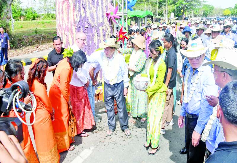 ၂၀၂၅ ခုနှစ်၊ မတ်လ ၂၇ ရက်နေ့တွင်ကျရောက်သည့် နှစ် (၈၀) ပြည့် တပ်မတော်နေ့ စစ်ရေးပြအခမ်းအနားတက်ရောက်ရန် နေပြည်တော်ရှိ ဘုရင့်နောင်ရိပ်သာ၌ ခေတ္တတည်းခိုနေထိုင်လျက်ရှိသည့် တပ်မတော်တွင် တာဝန်ထမ်းဆောင်ခဲ့သော အငြိမ်းစားတပ်မတော်အရာရှိကြီးများနှင့်ဇနီးများအား ယနေ့နံနက်ပိုင်းတွင် နိုင်ငံတော်စီမံအုပ်ချုပ်ရေးကောင်စီဥက္ကဋ္ဌ တပ်မတော်ကာကွယ်ရေးဦးစီးချုပ် ဗိုလ်ချုပ်မှူးကြီး မင်းအောင်လှိုင်နှင့် ဇနီးဒေါ်ကြူကြူလှတို့က သွားရောက်၍တွေ့ဆုံဂါရဝပြုနှုတ်ဆက်သည်။
