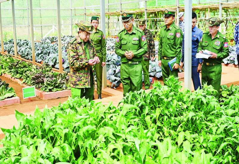 နိုင်ငံတော်စီမံအုပ်ချုပ်ရေးကောင်စီဥက္ကဋ္ဌ တပ်မတော်ကာကွယ်ရေးဦးစီးချုပ် ဗိုလ်ချုပ်မှူးကြီးမင်းအောင်လှိုင်သည် ယနေ့နံနက်ပိုင်းတွင် ခရီးစဉ်တွင်လိုက်ပါလာသည့် အဖွဲ့ဝင်များ၊ အရှေ့ပိုင်းတိုင်းစစ်ဌာနချုပ်တိုင်းမှူးနှင့် တာဝန်ရှိသူများလိုက်ပါ၍ ဗထူးတပ်နယ်အတွင်းရှိ နယ်မြေခံစိုက်ပျိုးမွေးမြူရေးတပ်ရင်း၌ စိုက်ပျိုးမွေးမြူရေးလုပ်ငန်းများဆောင်ရွက်ထားရှိမှုနှင့် နယ်မြေခံတပ်မတော်ဆေးရုံတို့သို့ သွားရောက်ကြည့်ရှုစစ်ဆေးသည်။