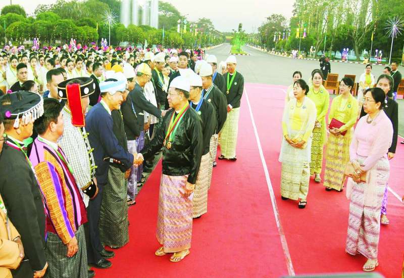 ပြည်ထောင်စုသမ္မတမြန်မာနိုင်ငံတော် နိုင်ငံတော်စီမံအုပ်ချုပ်ရေးကောင်စီဥက္ကဋ္ဌ နိုင်ငံတော်ဝန်ကြီးချုပ် ဗိုလ်ချုပ်မှူးကြီး သတိုးမဟာသရေစည်သူ သတိုးသီရိသုဓမ္မ မင်းအောင်လှိုင်နှင့် ဇနီးဒေါ်ကြူကြူလှတို့က တည်ခင်းဧည့်ခံသည့် ၂၀၂၅ ခုနှစ် (၇၈) နှစ်မြောက် ပြည်ထောင်စုနေ့အထိမ်းအမှတ်ဂုဏ်ပြုညစာစားပွဲ အခမ်းအနားကို ယနေ့ညပိုင်းတွင် နေပြည်တော်ရှိ မြို့တော်ခန်းမဥပစာရင်ပြင်၌ ကျင်းပသည်။