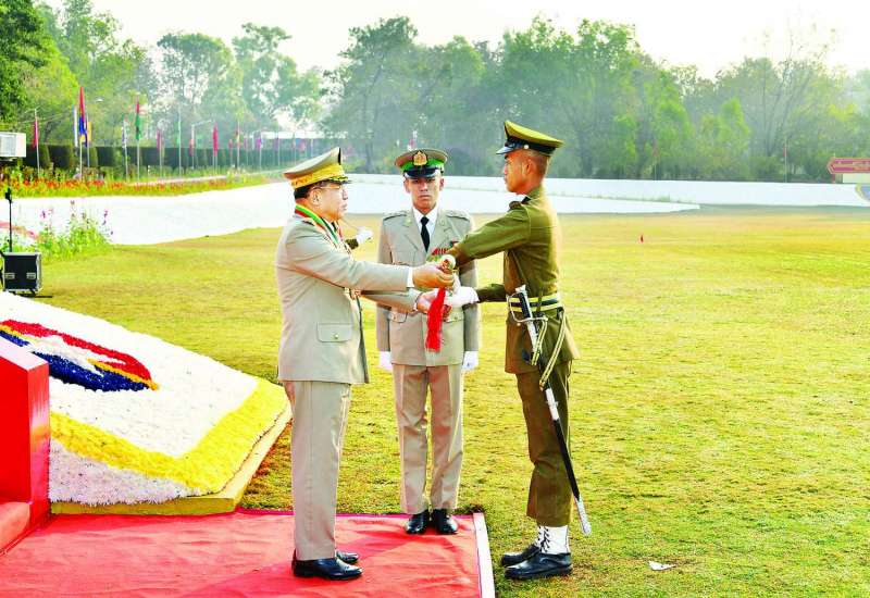 တပ်မတော်(ကြည်း) ဗိုလ်သင်တန်းကျောင်း(ဗထူး) ဗိုလ်လောင်းသင်တန်း အမှတ်စဉ် (၁၂၈)သူရတပ်ခွဲ သင်တန်းဆင်းဂုဏ်ပြုစစ်ရေးပြအခမ်းအနားကို ယနေ့နံနက်ပိုင်းတွင် ဗထူးမြို့၊ တပ်မတော်(ကြည်း)ဗိုလ်သင်တန်းကျောင်း (ဗထူး)စစ်ရေးပြကွင်း၌ ကျင်းပရာ နိုင်ငံတော်စီမံအုပ်ချုပ်ရေးကောင်စီဥက္ကဋ္ဌ တပ်မတော်ကာကွယ်ရေးဦးစီးချုပ် ဗိုလ်ချုပ်မှူးကြီး သတိုးမဟာသရေစည်သူ သတိုးသီရိသုဓမ္မ မင်းအောင်လှိုင် တက်ရောက်မိန့်ခွန်းပြောကြားသည်။