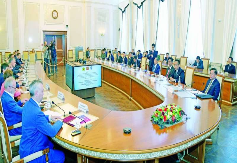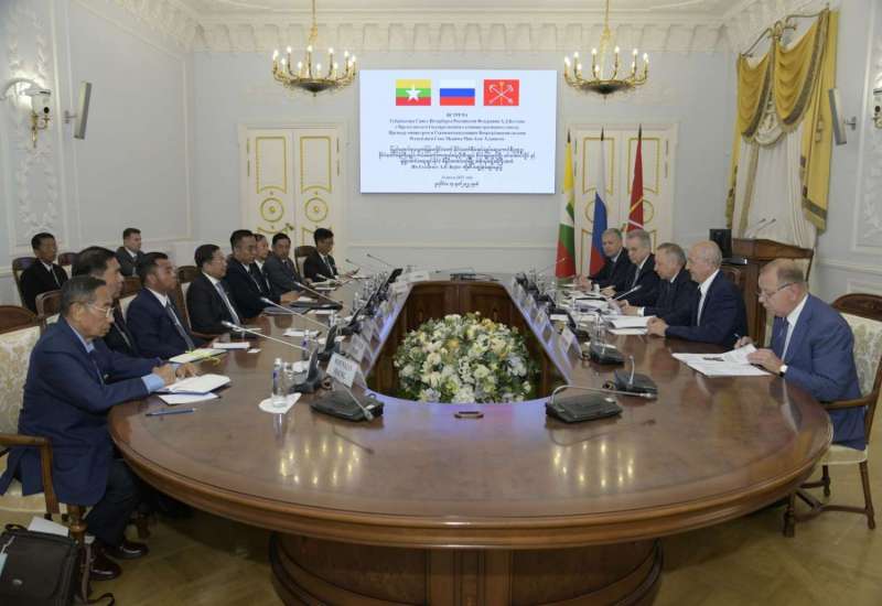 ရုရှားဖက်ဒရေးရှင်းနိုင်ငံသို့ ရောက်ရှိနေသည့် နိုင်ငံတော်စီမံအုပ်ချုပ်ရေး ကောင်စီဥက္ကဋ္ဌ၊ နိုင်ငံတော်ဝန်ကြီးချုပ် ဗိုလ်ချုပ်မှူးကြီး မင်းအောင်လှိုင်သည် ဇူလိုင် ၁၄ ရက် ဒေသစံတော်ချိန် နံနက်ပိုင်းတွင် စိန့်ပီတာစဘတ်မြို့အစိုးရအဖွဲ့ အကြီးအကဲ Mr.Alexander Beglov နှင့် အစိုးရအဖွဲ့ရုံး၌ တွေ့ဆုံဆွေးနွေးသည်။