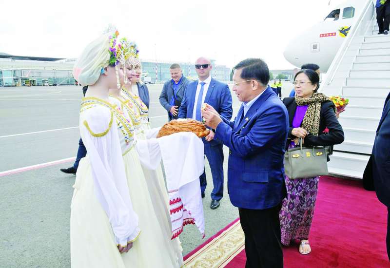 ရုရှားဖက်ဒရေးရှင်းနိုင်ငံသို့ရောက်ရှိနေသည့် နိုင်ငံတော်စီမံအုပ်ချုပ်ရေးကောင်စီဥက္ကဋ္ဌ၊ နိုင်ငံတော်ဝန်ကြီးချုပ် ဗိုလ်ချုပ်မှူးကြီးမင်းအောင်လှိုင် ဦးဆောင်သည့် ကိုယ်စားလှယ်အဖွဲ့သည် စစ်သံမှူးဗိုလ်မှူးချုပ်မိုးကျော်နှင့် တာဝန်ရှိသူများလိုက်ပါ၍ ယနေ့ဒေသစံတော်ချိန် ညနေပိုင်း တွင် Republic of the Tatarstan ၊ ကာဇန်မြို့၊ ကာဇန်လေဆိပ်သို့ ရောက်ရှိကြရာ Republic of the Tatarstan သမ္မတMr. Rustam Nurgaliyevich Minnikhanov နှင့် တာဝန်ရှိသူတို့က ရိုးရာဓလေ့ထုံးတမ်းစဉ်လာများနှင့်အညီ ခင်မင်ရင်းနှီးစွာ ကြိုဆိုနှုတ်ဆက်ကြသည်။