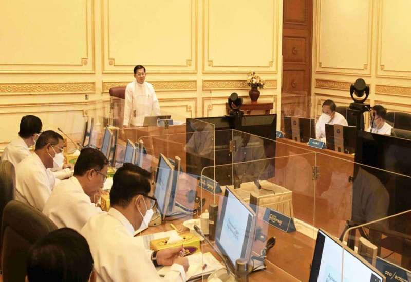 ပြည်ထောင်စုအစိုးရအဖွဲ့အစည်းအဝေး အမှတ်စဉ် (၅/၂၀၂၂)ကို ယနေ့မွန်းလွဲပိုင်းတွင် နေပြည်တော်ရှိ နိုင်ငံတော်စီမံအုပ်ချုပ်ရေးကောင်စီဥက္ကဋ္ဌရုံး အစည်းအဝေးခန်းမ၌ကျင်းပရာ နိုင်ငံတော်စီမံအုပ်ချုပ်ရေးကောင်စီဥက္ကဋ္ဌ နိုင်ငံတော်ဝန်ကြီးချုပ် ဗိုလ်ချုပ်မှူးကြီး မင်းအောင်လှိုင် တက်ရောက်အမှာစကားပြောကြားသည်။