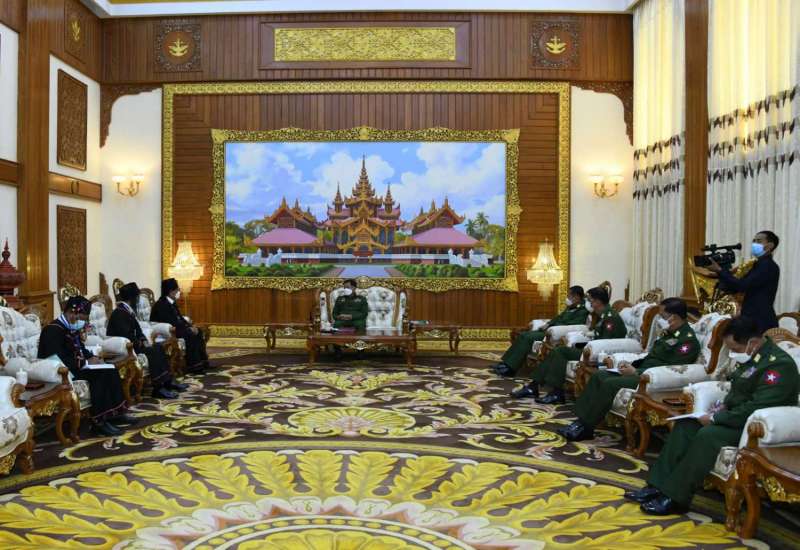 နိုင်ငံတော်စီမံအုပ်ချုပ်ရေးကောင်စီဥက္ကဋ္ဌ တပ်မတော်ကာကွယ်ရေးဦးစီးချုပ် ဗိုလ်ချုပ်မှူးကြီးမင်းအောင်လှိုင်သည် လားဟူဒီမိုကရက်တစ်အစည်းအရုံး(LDU)မှ အထွေထွေအတွင်းရေးမှူး ကျာဆော်လမွန် ဦးဆောင်သည့် ငြိမ်းချမ်းရေးကိုယ်စားလှယ်အဖွဲ့အား ယနေ့မွန်းလွဲပိုင်းတွင် နေပြည်တော်ရှိ ဘုရင့်နောင်ရိပ်သာ ဧည့်ခန်းမဆောင်၌ တွေ့ဆုံ၍ ငြိမ်းချမ်းရေးဆိုင်ရာကိစ္စရပ်များ ဆွေးနွေးသည်။