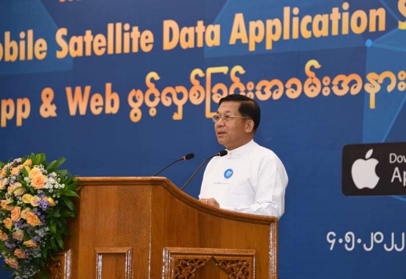 ပြန်ကြားရေးဝန်ကြီးဌာန၊ မြန်မာ့အသံနှင့်ရုပ်မြင်သံကြား MRTV Media Worldwide Mobile Satellite Data Application Service MRTV App & Web စတင်ဖွင့်လှစ်ခြင်းအခမ်းအနားကို ယနေ့မွန်းလွဲပိုင်းတွင် နေပြည်တော်ရှိ၊ မြန်မာအပြည်ပြည်ဆိုင်ရာ ကွန်ဗင်းရှင်းစင်တာ (MICC-2)၌ ကျင်းပပြုလုပ်ရာ နိုင်ငံတော်စီမံအုပ်ချုပ်ရေးကောင်စီဥက္ကဋ္ဌ၊ နိုင်ငံတော်ဝန်ကြီးချုပ် ဗိုလ်ချုပ်မှူးကြီး မင်းအောင်လှိုင် တက်ရောက်အမှာစကားပြောကြားသည်။
