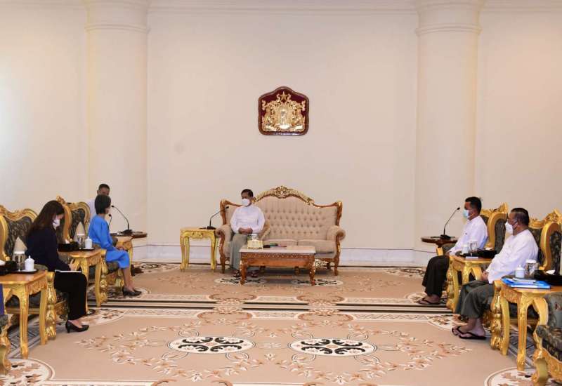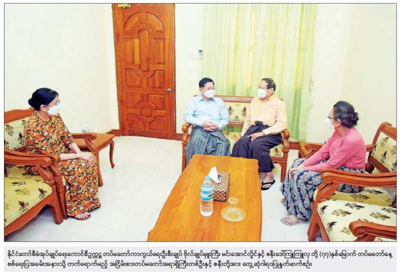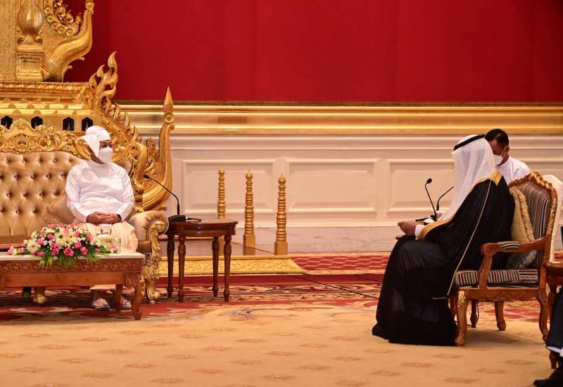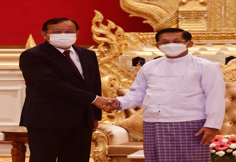 နိုင်ငံတော်စီမံအုပ်ချုပ်ရေးကောင်စီဥက္ကဋ္ဌ နိုင်ငံတော်ဝန်ကြီးချုပ် ဗိုလ်ချုပ်မှူးကြီး မင်းအောင်လှိုင် အာဆီယံအလှည့်ကျဥက္ကဋ္ဌ၏ မြန်မာနိုင်ငံဆိုင်ရာအထူးကိုယ်စားလှယ် ကမ္ဘောဒီးယားနိုင်ငံ ဒုတိယဝန်ကြီးချုပ်၊ နိုင်ငံခြားရေးနှင့် အပြည်ပြည်ဆိုင်ရာ ပူးပေါင်း ဆောင်ရွက်ရေးဝန်ကြီး H.E. Mr. Prak Sokhonn နှင့် အာဆီယံအတွင်းရေးမှူးချုပ် H.E. Dato Lim Jock Hoi တို့အား ယနေ့နံနက် ၁၀ နာရီခွဲတွင် နေပြည်တော်ရှိ နိုင်ငံတော်စီမံ အုပ်ချုပ်ရေးကောင်စီဥက္ကဋ္ဌရုံး၊ သံတမန်ဆောင်ဧည့်ခန်းမ၌ လက်ခံတွေ့ဆုံသည်။