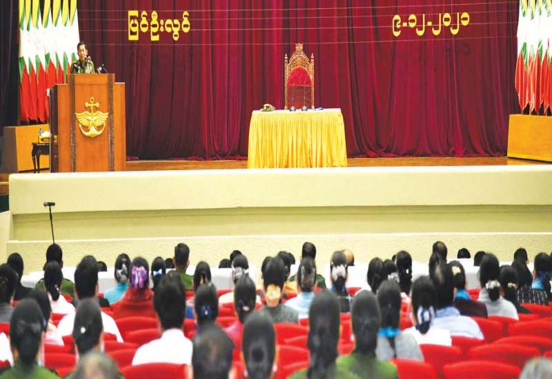 နေပြည်တော် ဒီဇင်ဘာ ၁၃ နိုင်ငံတော်စီမံအုပ်ချုပ်ရေးကောင်စီအစည်းအဝေး (၁၈/၂၀၂၁)ကို ယနေ့မွန်းလွဲပိုင်း တွင် နေပြည်တော်ရှိ နိုင်ငံတော်စီမံအုပ်ချုပ်ရေးကောင်စီဥက္ကဋ္ဌရုံး အစည်းအဝေးခန်းမ၌ ကျင်းပရာ နိုင်ငံတော်စီမံအုပ်ချုပ်ရေးကောင်စီဥက္ကဋ္ဌ၊ နိုင်ငံတော်ဝန်ကြီးချုပ် ဗိုလ်ချုပ်မှူးကြီး မင်းအောင်လှိုင် တက်ရောက်အမှာစကား ပြောကြားသည်။