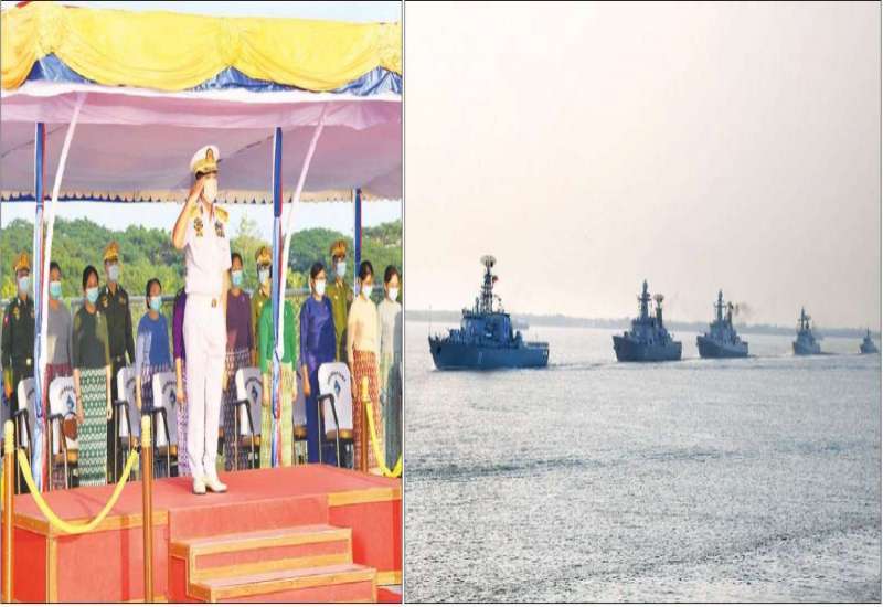 ၁၉၄၇ ခုနှစ်၊ ဒီဇင်ဘာ ၂၄ ရက်တွင် စတင်ဖွဲ့စည်း တည်ထောင်ခဲ့သော တပ်မတော်(ရေ)သည် ယနေ့တွင် (၇၄)နှစ်တင်းတင်း ပြည့်မြောက်ခဲ့ပြီဖြစ်ပြီး ယနေ့ (၇၄)နှစ်မြောက် တပ်မတော်(ရေ)နှစ်ပတ်လည်နေ့တွင် ရေငုပ်သင်္ဘောစစ်ရေယာဉ် (မင်းရဲကျော်ထင်) အပါအဝင် စစ်ရေယာဉ်များ တပ်တော်ဝင်ခြင်း အခမ်းအနားအား ရန်ကုန်မြို့ရှိ အမှတ်(၃) ရေတပ်ဆိပ်ခံတံတား၌ ကျင်းပပြုလုပ်ရာ နိုင်ငံတော်စီမံ အုပ်ချုပ်ရေးကောင်စီဥက္ကဋ္ဌ တပ်မတော်ကာကွယ်ရေးဦးစီးချုပ် ဗိုလ်ချုပ်မှူးကြီး မင်းအောင်လှိုင် တက်ရောက်ဂုဏ်ပြုသည်။
