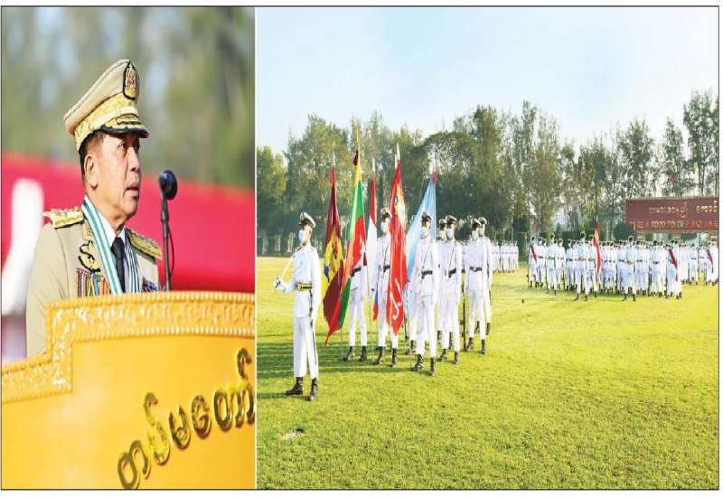 တပ်မတော်၏ အမျိုးသမီးစစ်မှုထမ်းများ၏ အခန်းကဏ္ဍကို အားသစ်လောင်းမည့် ဘွဲ့ရ အမျိုးသမီးဗိုလ်လောင်းသင်တန်း အမှတ်စဉ်(၈) သင်တန်းဆင်းဂုဏ်ပြု စစ်ရေးပြ အခမ်းအနား ကို ယနေ့နံနက်ပိုင်းတွင် ရန်ကုန်မြို့ရှိ တပ်မတော် (ကြည်း) ဗိုလ်သင်တန်းကျောင်း (မှော်ဘီ) စစ်ရေးပြကွင်း၌ ကျင်းပပြုလုပ်ရာ နိုင်ငံတော်စီမံ အုပ်ချုပ်ရေးကောင်စီဥက္ကဋ္ဌ တပ်မတော် ကာကွယ်ရေးဦးစီးချုပ် ဗိုလ်ချုပ်မှူးကြီး မဟာသရေစည်သူ မင်းအောင်လှိုင် တက်ရောက် မိန့်ခွန်း ပြောကြားသည်။