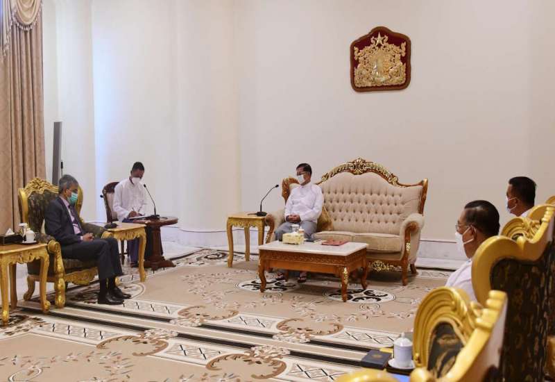 နိုင်ငံတော်စီမံအုပ်ချုပ်ရေးကောင်စီဥက္ကဋ္ဌ နိုင်ငံတော်ဝန်ကြီးချုပ် ဗိုလ်ချုပ်မှူးကြီး မင်းအောင်လှိုင်သည် အိန္ဒိယနိုင်ငံ၊ ပြည်ပရေးရာဝန်ကြီးဌာန၊ နိုင်ငံခြားရေးအတွင်းဝန် H.E. Shri Harsh Vardhan Shringle အား ယနေ့နံနက်ပိုင်းတွင် ရန်ကုန်တိုင်း စစ်ဌာနချုပ်၊ ကုန်းမြင့်သာရှိ ဇေယျာသီရိဗိမာန် ဧည့်ခန်းမဆောင်၌ လက်ခံတွေ့ဆုံ သည်။