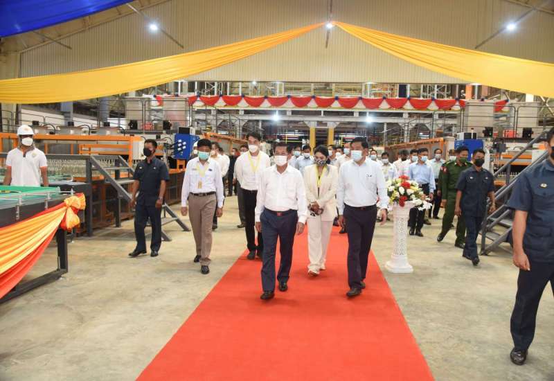 ရန်ကုန်တိုင်းဒေသကြီး၊ သန်လျင်မြို့နယ်ရှိ မြန်မာစီးပွားရေးကော်ပိုရေးရှင်း၊ သန်လျင်ဖန်ချက်စက်ရုံ အဆင့်မြှင်တင်ဖွင့်လှစ်ခြင်း အခမ်းအနားအား ယနေ့နံနက်ပိုင်းတွင် ကျင်းပပြုလုပ်ရာ နိုင်ငံတော်စီမံအုပ်ချုပ်ရေးကောင်စီဥက္ကဋ္ဌ နိုင်ငံတော်ဝန်ကြီးချုပ် ဗိုလ်ချုပ်မှူးကြီး မင်းအောင်လှိုင် တက်ရောက်ဖွင့်လှစ်သည်။