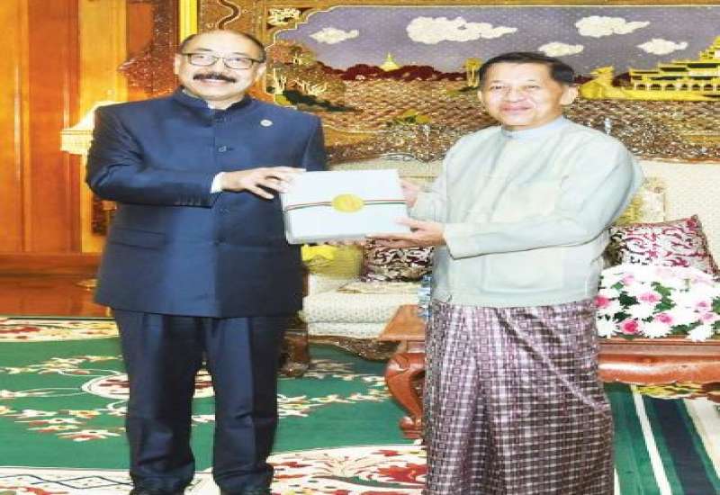 နိုင်ငံတော်စီမံအုပ်ချုပ်ရေးကောင်စီဥက္ကဋ္ဌ၊ နိုင်ငံတော်ဝန်ကြီးချုပ် ဗိုလ်ချုပ်မှူးကြီး မင်းအောင်လှိုင်သည် တာဝန်ပြီးဆုံး၍ ပြန်လည်ထွက်ခွာမည့် မြန်မာနိုင်ငံဆိုင်ရာ အိန္ဒိယနိုင်ငံသံအမတ်ကြီး H.E. Mr. Saurabh Kumar အား ယနေ့မွန်းလွဲပိုင်းတွင် နေပြည်တော်ရှိ နိုင်ငံတော်စီမံအုပ်ချုပ်ရေးကောင်စီဥက္ကဋ္ဌရုံး၊ ဧည့်ခန်းမ၌ လက်ခံတွေ့ဆုံသည်။