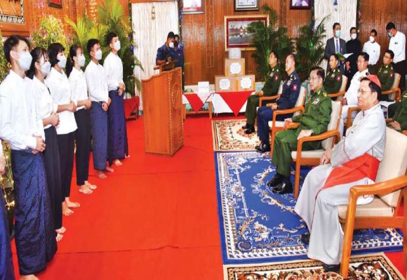 ၂၀၂၁ ခုနှစ် ခရစ္စမတ်နေ့အထိမ်းအမှတ် စုပေါင်းဂုဏ်ပြုဆုတောင်းပွဲ အခမ်း အနားကို ယနေ့ညနေပိုင်းတွင် ရန်ကုန်တိုင်းဒေသကြီး၊ ဗိုလ်တထောင်မြို့နယ်၊ စိန့်မေရီကယ်သီဒြယ် ဘုရားရှိခိုးကျောင်းအနီးရှိ ရန်ကုန်ကက် သလစ်ဂိုဏ်းချုပ် သာသနာ၊ ဂိုဏ်းချုပ်ဆရာတော်ကြီး ကာဒီနယ်ချားလ်စ်ဘို၏ ကျောင်းတိုက်၌ ကျင်းပပြုလုပ် ရာ နိုင်ငံတော်စီမံအုပ်ချုပ်ရေး ကောင်စီဥက္ကဋ္ဌ နိုင်ငံတော်ဝန်ကြီးချုပ် ဗိုလ်ချုပ်မှူးကြီး မင်းအောင်လှိုင် တက်ရောက်ချီးမြှင့်သည်။
